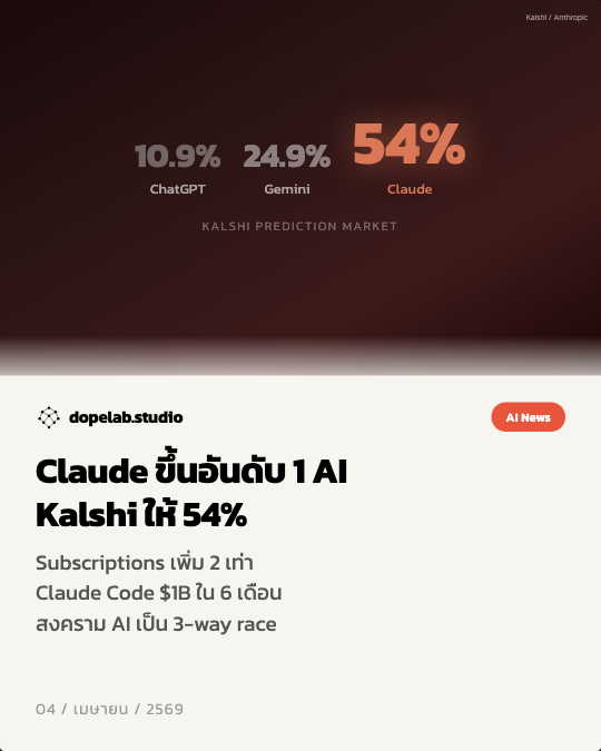 | Kalshi Prediction | 54% chance เป็น best AI |